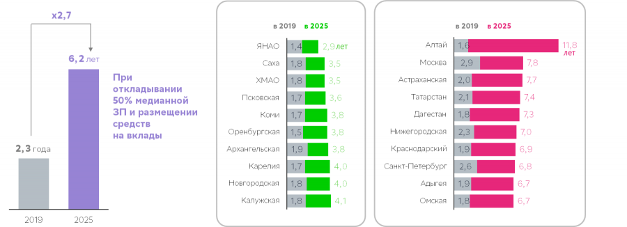 При этом показатели существенно отличаются от региона к региону, отметил Тарас Скворцов. В топ-10 регионов с минимальным сроком накопления на первоначальный взнос вошли Ямало-Ненецкий автономный округ (2,9 года), Республика Саха (Якутия) и Ханты-Мансийский автономный округ (по 3,5 года), Псковская область (3,6 года), Республика Коми, Оренбургская и Архангельская области (по 3,8 года), Республика Карелия и Новгородская область (по 4 года), Калужская область (4,1 года).